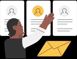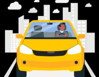 3 formas geométricas mostrando: uma mulher anotando os detalhes de um veículo por estacionar em um local proíbido, um cidadão registrando a ocorrência pelo celular, e a proprietária do veículo recebendo a notificação no celular